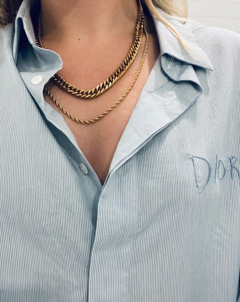 La Lien Serré peut être portée seule mais également en superposition avec des pendentifs ou combinée avec une autre chaine pour un style affirmé.